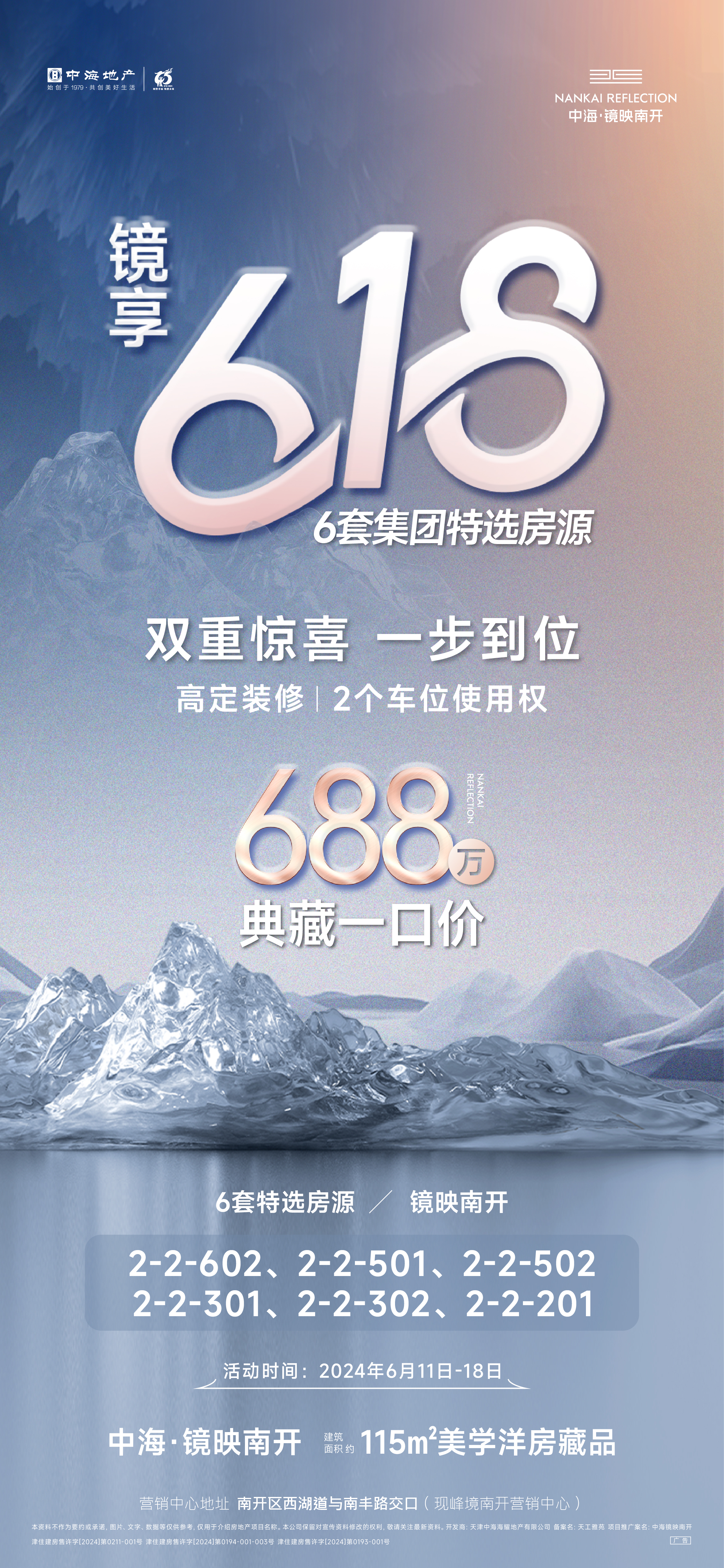 南京路地段洋房房源,年中特选,双重惊喜:6套115㎡房源,统一典藏一口价688万元/套,加送精装修及2个车位!