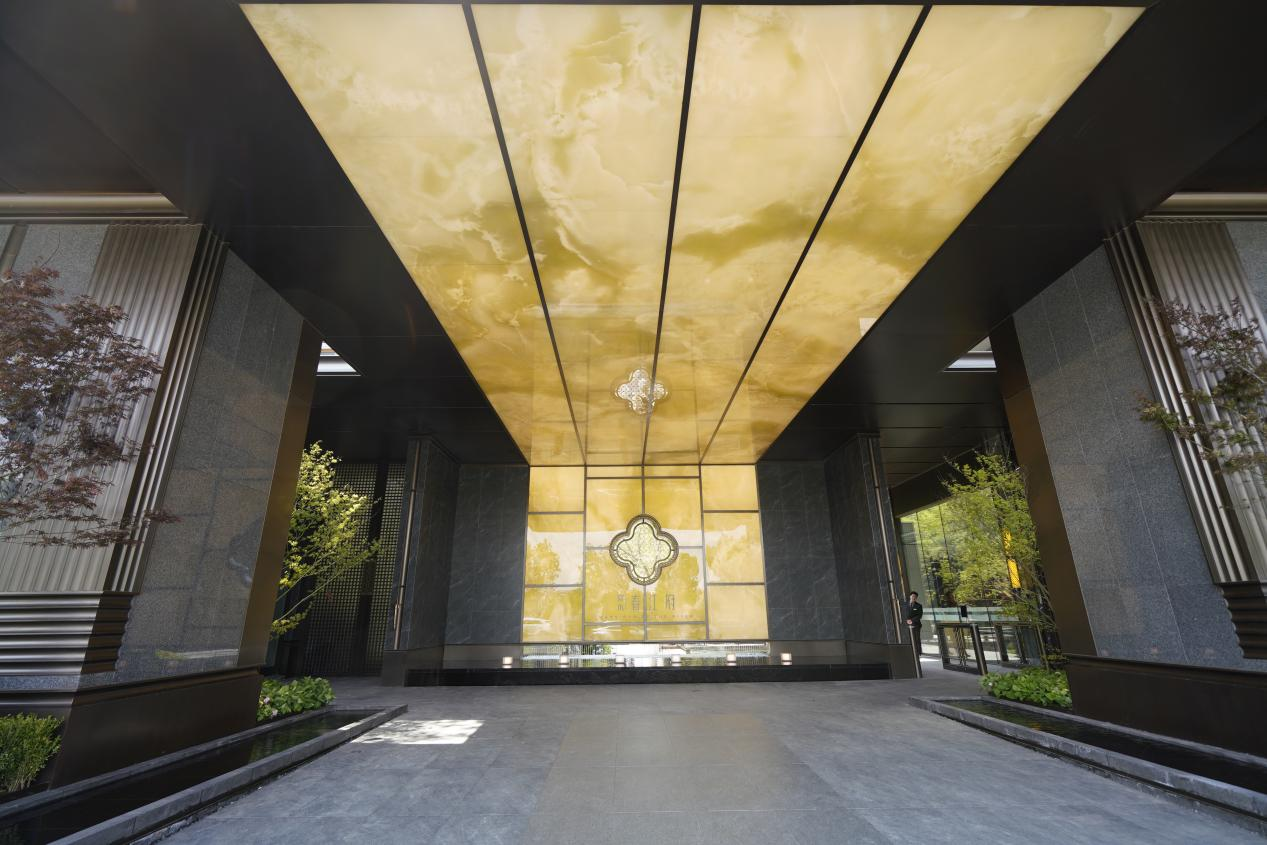 抵达宜禾·春江府示范区,映入眼帘的是恢宏大气的门头,约50M超长城市展示界面,其独特的设计风格与精湛的工艺,彰显出项目的高端定位与非凡气度。星级酒店落客标准,约16米进深的巨大门廊,通顶玉石纹样的顶板铺陈而下,像极了一抹翠绿的天河,白天是湛蓝天光下的翡翠,夜晚是迎接归家人的暖意。而大门中央海棠花,既是社区人归家的第一盏灯,也自然成为社区内在景致的一幅天然取景框。