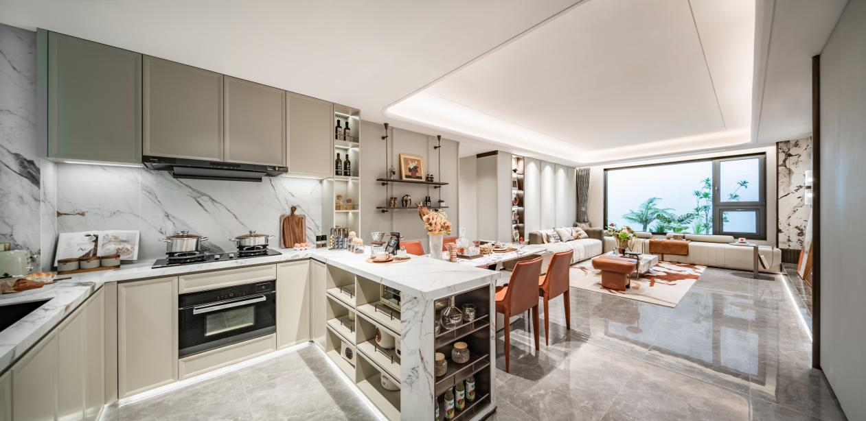在户型上融入S弯冰箱位设计、外置烟道