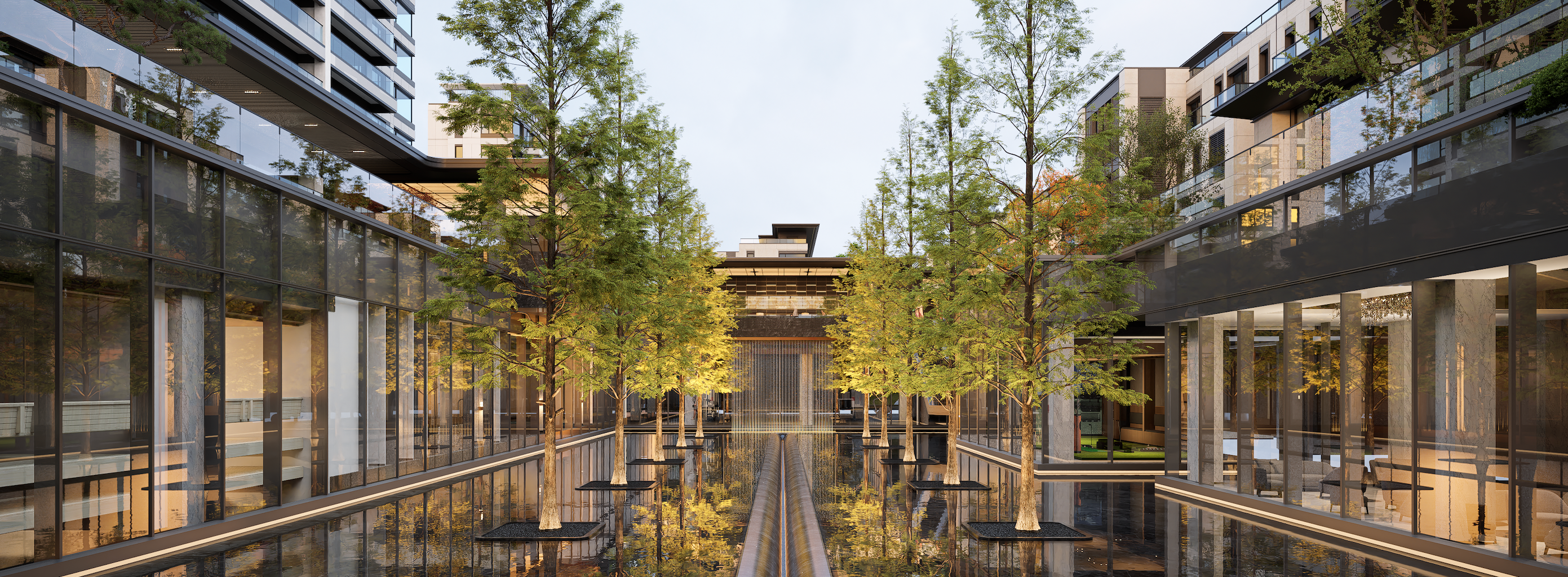 穿过门庭,一方微缩的自然画卷在眼前铺展。从南方远道而来的高大水杉,与北方的庭院竟能如此和谐共生。在精心的微气候营造与镜面水景的映衬下,这里不仅是林,更是会呼吸的庭院美术馆。四季更迭,草木枯荣,光影流转,每一帧都是自然创作的独一无二的艺术品。